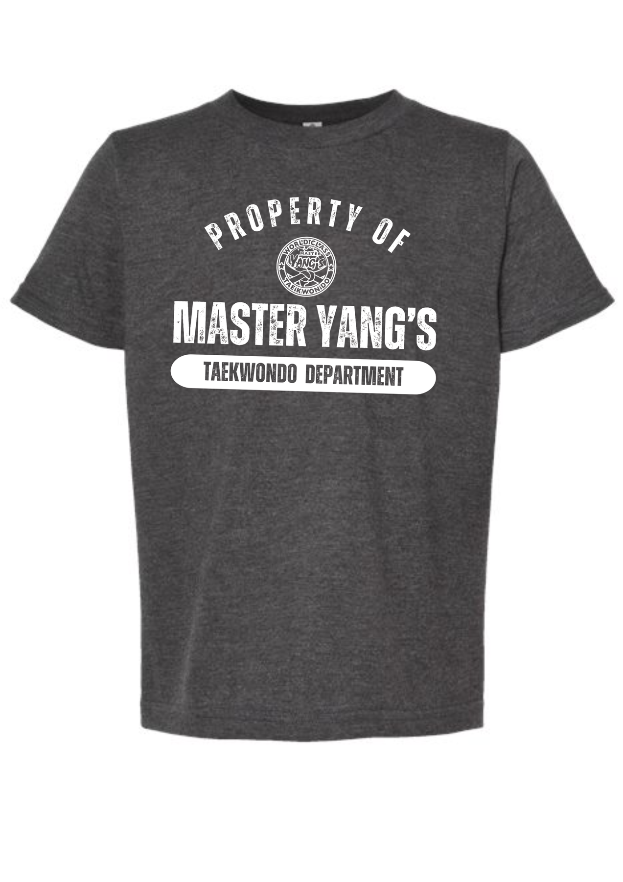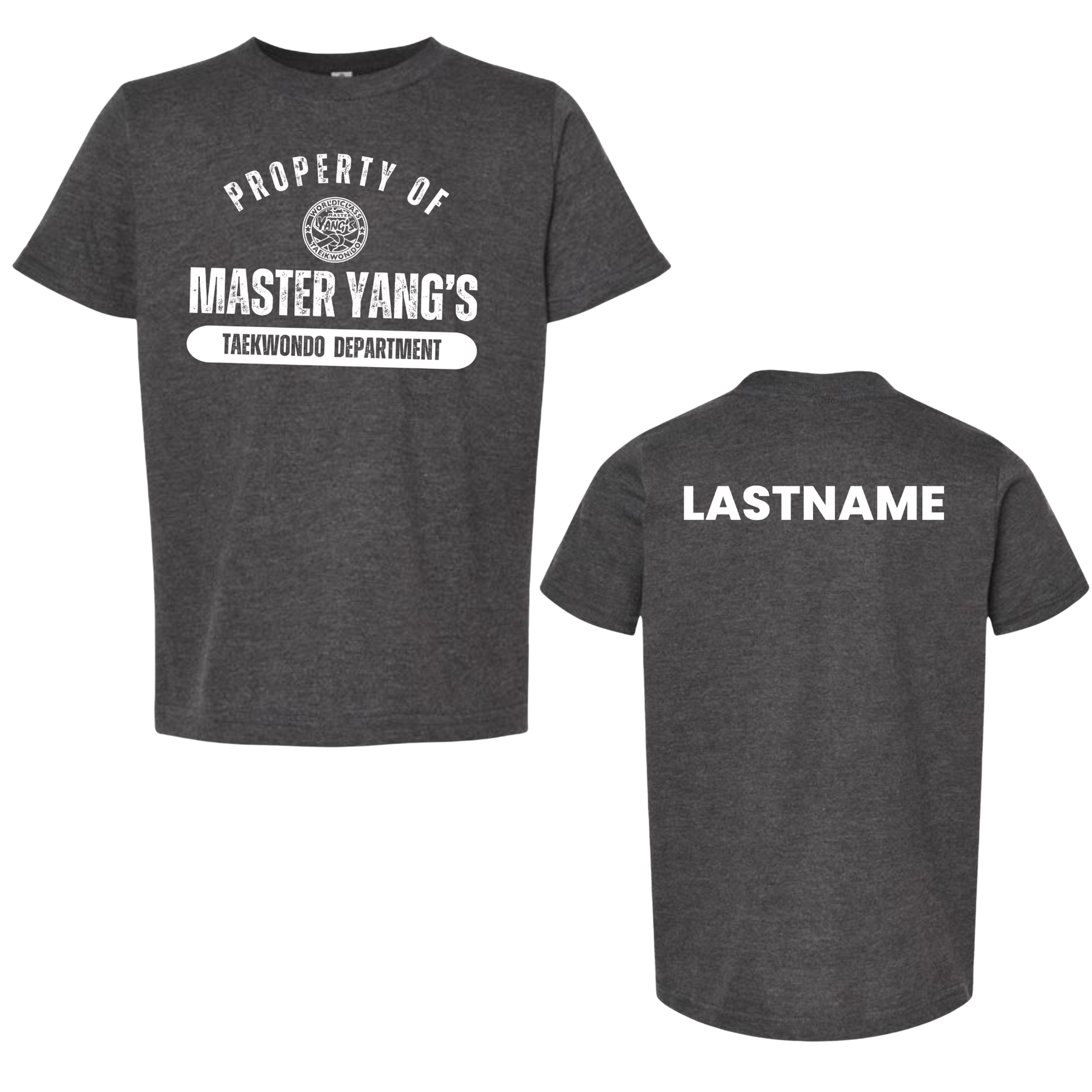 Support your student with this customized Property of Master Yang's TSHIRT in heather gray with getting the BACK of the shirt customized with YOUR child's LAST NAME!  Deadline to order is October 30th to have your shirt in time for the Tournament!